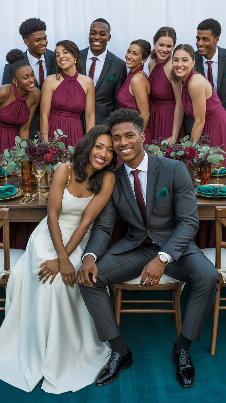 Berry brings depth, romance, and a little drama. Teal adds balance, calm, and a fresh sophistication. Together, they create a wedding atmosphere that feels joyful and intentional, whether you’re planning an intimate gathering or a lively celebration with a full dance floor.