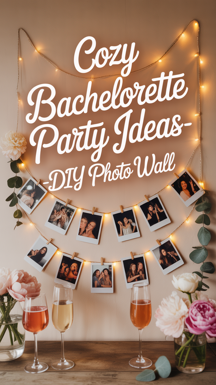 This is one of my favorite cozy bachelorette additions because it evolves throughout the night. Guests add photos as the evening unfolds, and it becomes a keepsake instead of just decor.