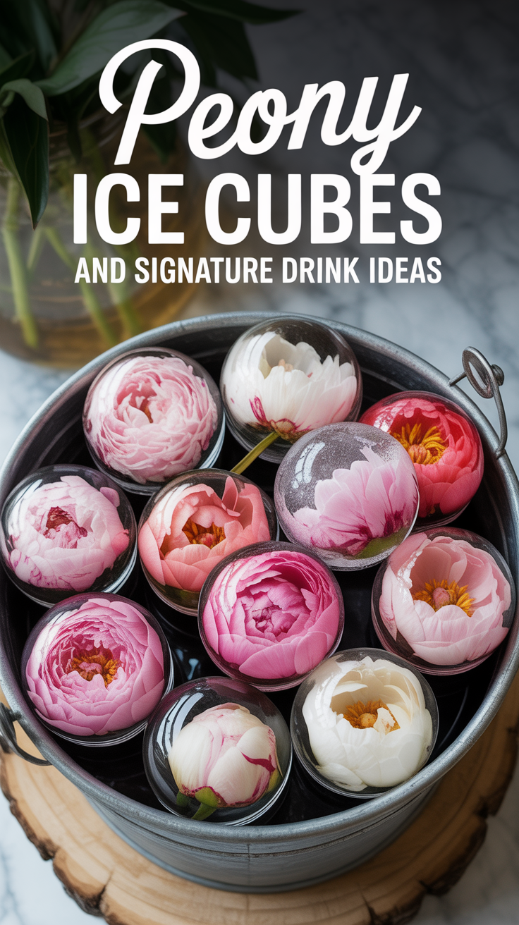 Drop peony ice cubes around ice into a bucket for decor, and serve drinks on the ice