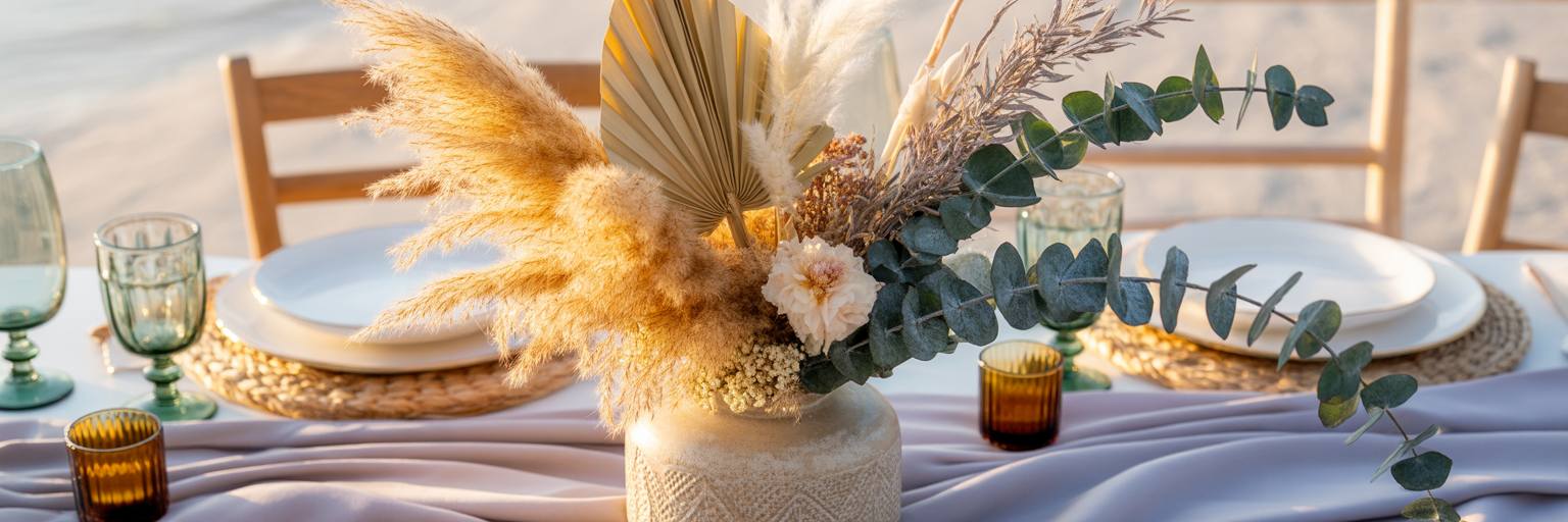 - Dried boho floral bundles last longer and add texture to your decor. You can use them for centerpieces, ceremony accents, or even signage. They’re especially helpful for earthy or desert-inspired palettes.