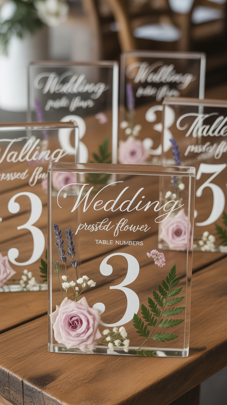 Pressed flower table numbers don’t just tell guests where to sit—they invite them to pause. Unlike standard cardstock or acrylic numbers, these feel like tiny art pieces placed thoughtfully around the room.