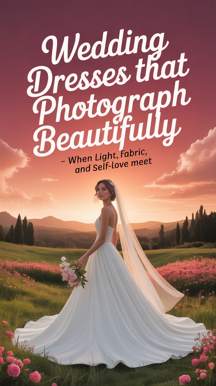 Fabrics like chiffon, crepe, and matte satin absorb light gently, creating an even, flattering appearance in photos. They minimize glare and allow facial features to remain the focal point.